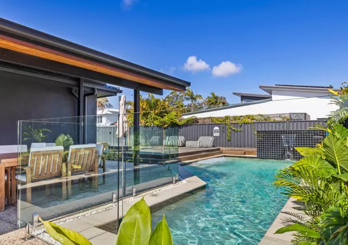 Take a dip in the excellent resort-style pool, with waterfall feature and spa section. The pool has been elegantly finished with a frameless glass surround and tropical feature plants.