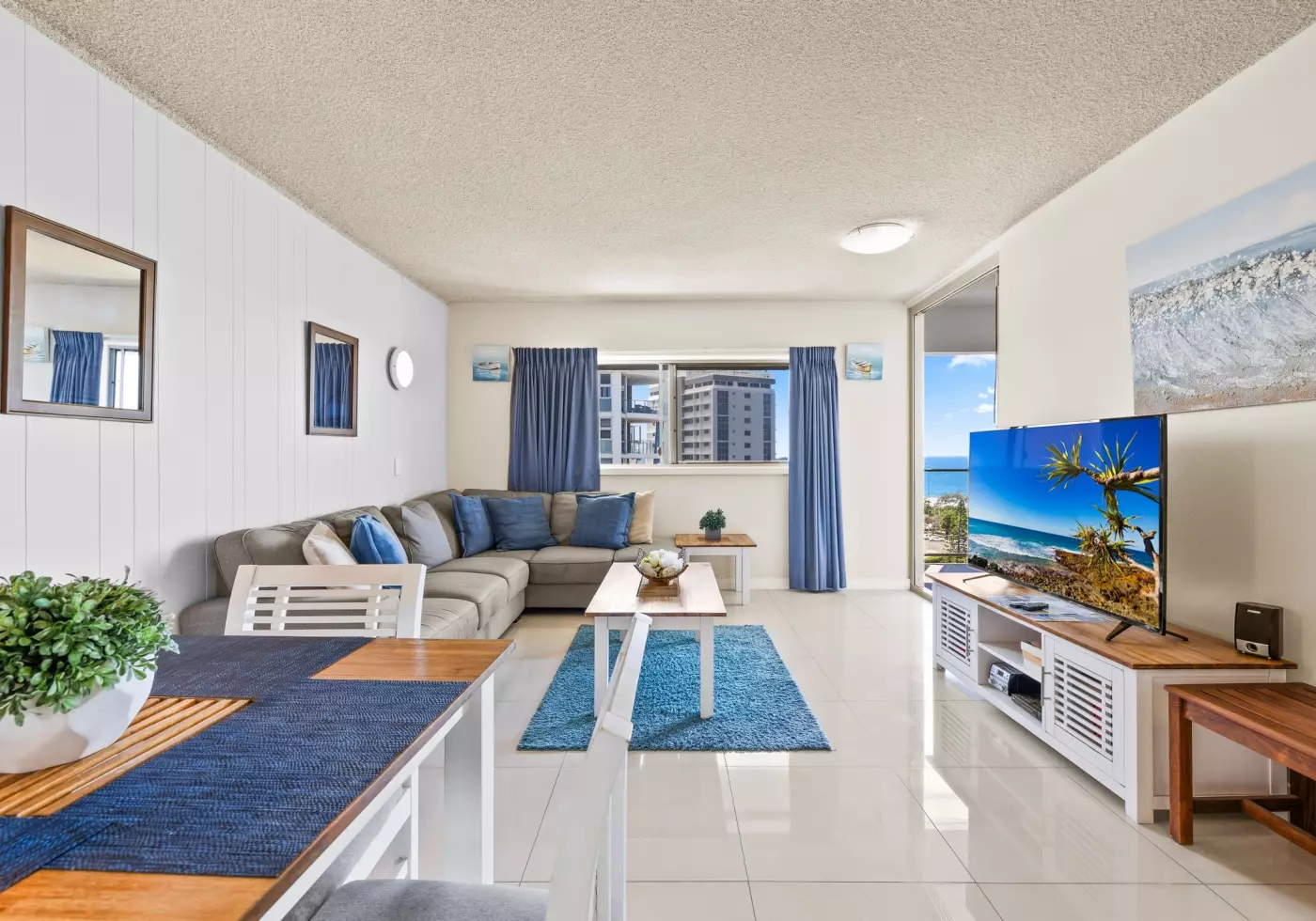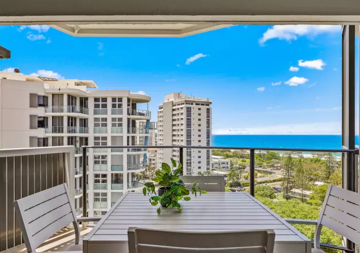Centrally located high on level 9 (10-floor building), unit 55 boasts some of the best views on the Coast, with uninterrupted views sweeping north east over Maroochydore Beach. Ideally set behind Maroochydore Caravan Park, the glorious views will also never change!