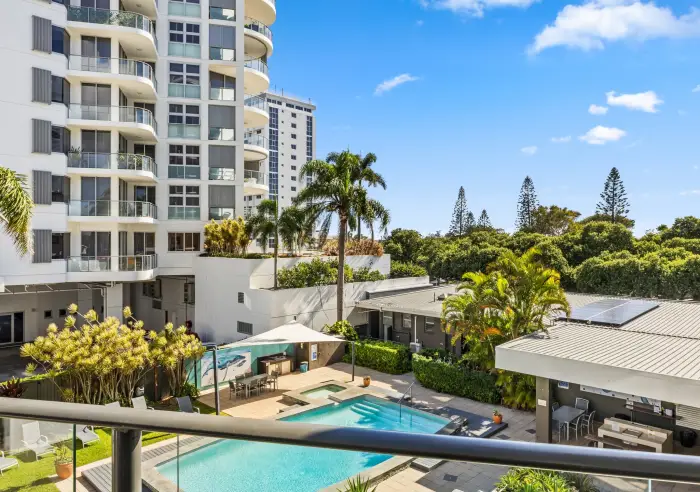 Enjoy the lovely poolside views across to the park and Maroochydore Beach. You will love the clean white spaces and beachy interior. From the open-plan kitchen, dining and living area to the fabulous balcony, everything is designed to maximise natural light, including floor-to-ceiling sliding doors.