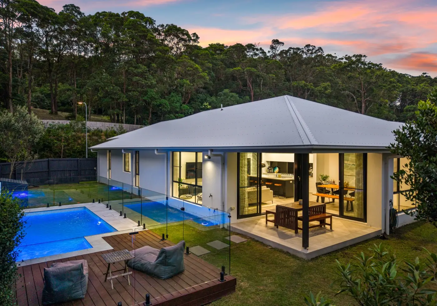 The property is ideally located on a large and private 601sqm corner block, and faces a forested reserve for ultimate peace and quiet, with just a handful of neighbours along the quiet street. The excellent property frontage is beautifully presented with landscaped lawns, tropical plants and stone features.